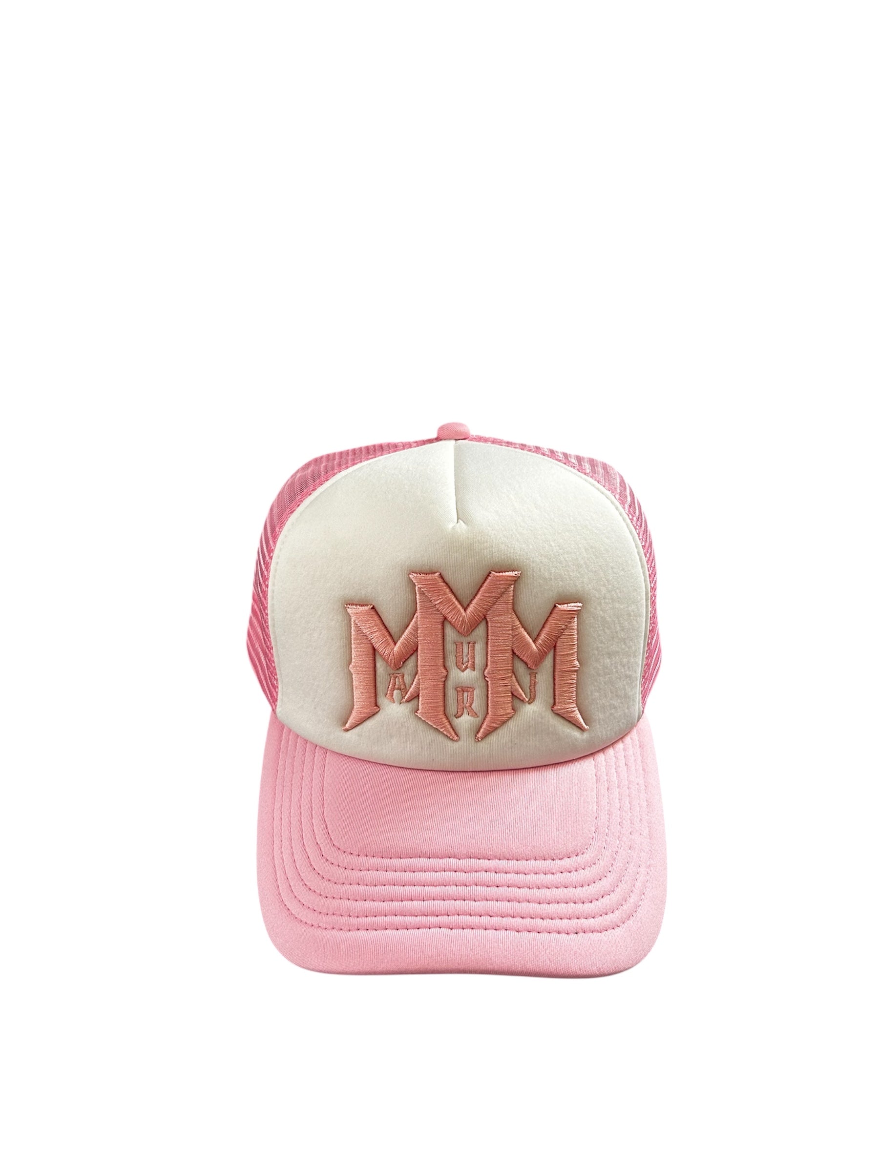 Bring a bold pop of color to your fit with the mauri Trucker Cap. Featuring a crisp white structured front panel and a standout 3D embroidered MM logo in pink, this cap pairs effortlessly with its breathable pink mesh backing. The curved brim and adjustable snapback closure keep it comfortable and versatile for everyday wear.